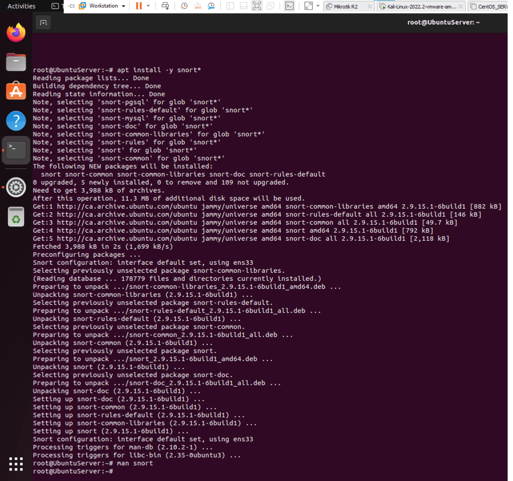 - Type apt install -y snort*