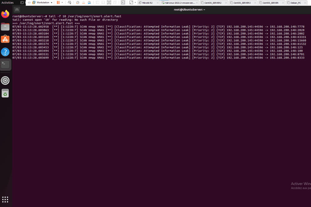 | UbuntuServer, Snort IDS | ens33 LAN 192.168.200.148/24 |